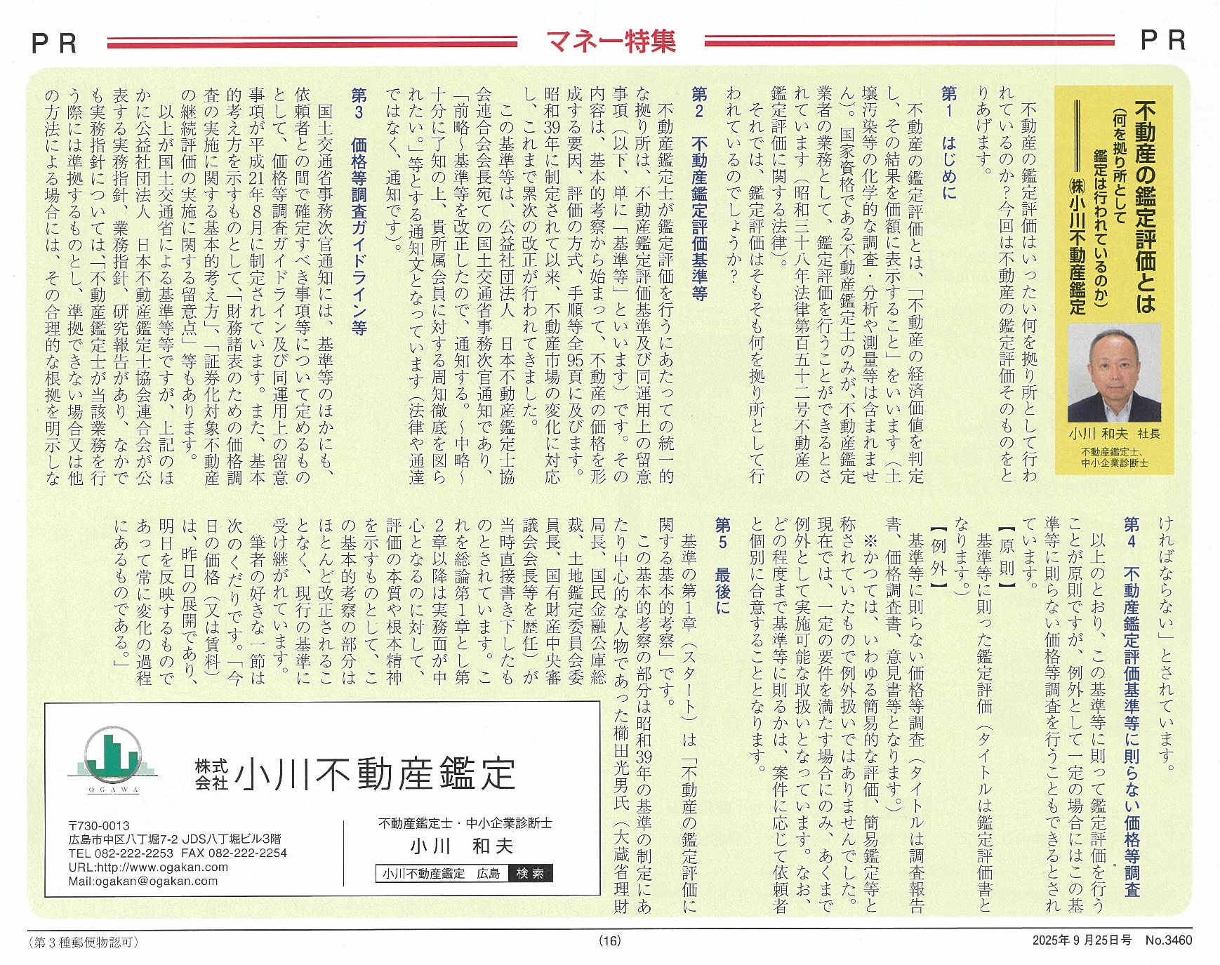広島経済レポート(令和7年9月25日号)に「不動産の鑑定評価とは(何を拠り所として鑑定は行われているのか)」が掲載されました。